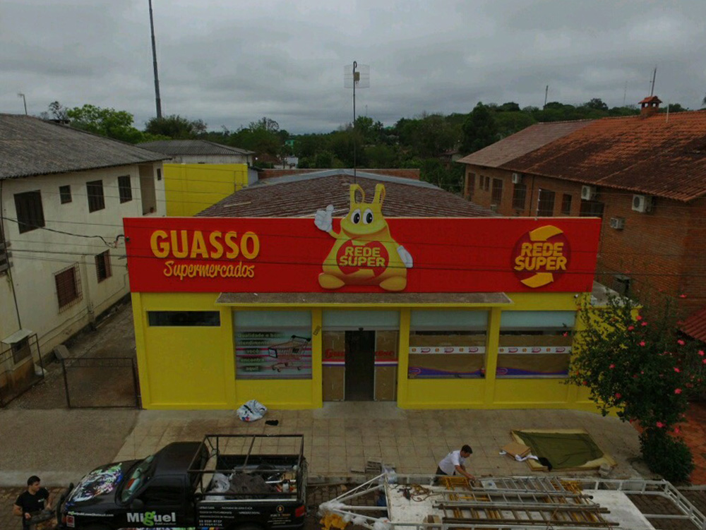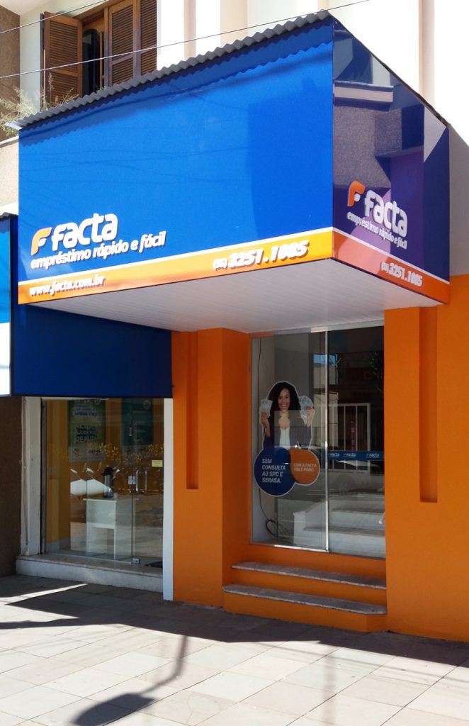 Produzimos fachadas corporativas padronizadas, respeitando padrões cromáticos, tipográficos e institucionais
